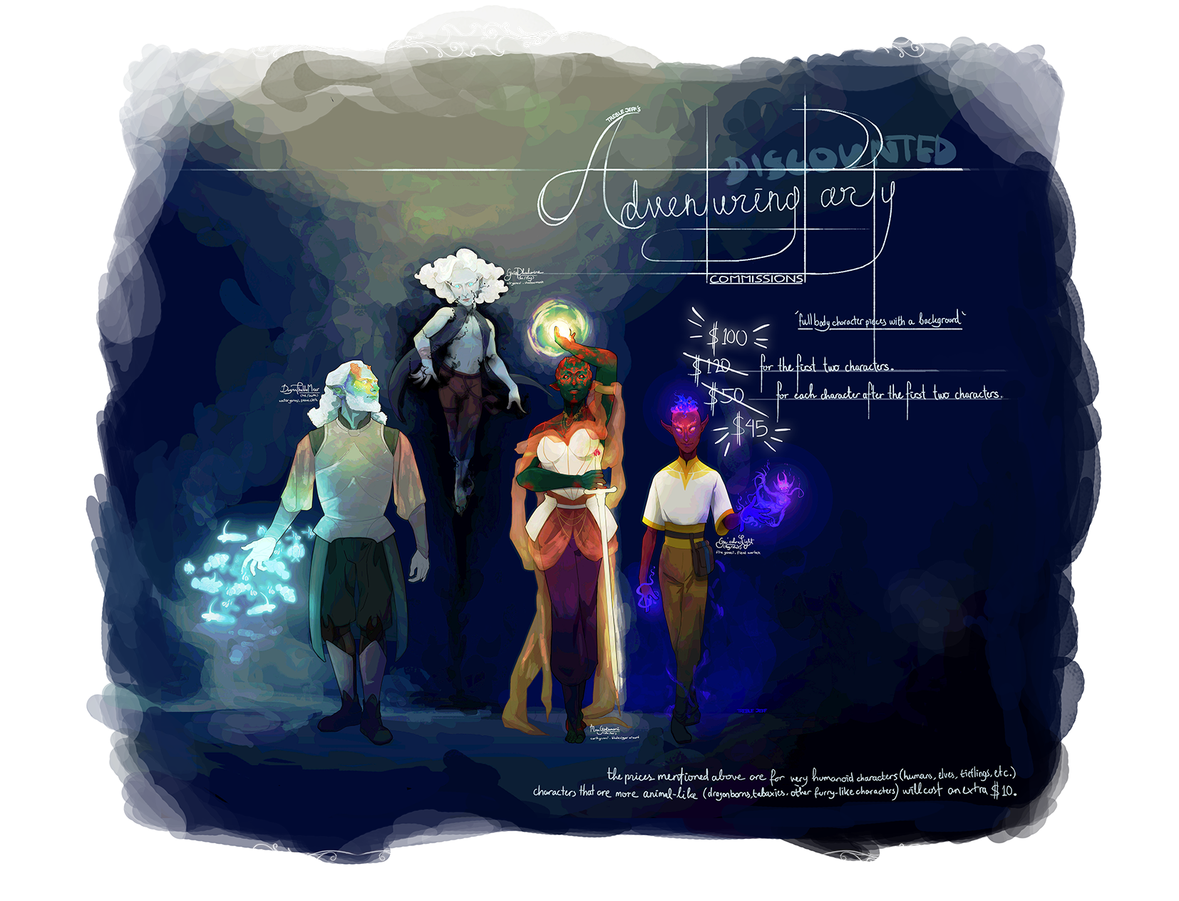 featured in the adventuring party commissions poster are my characters: